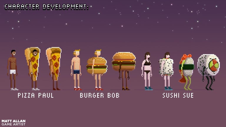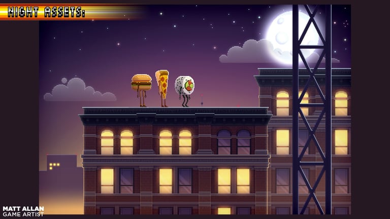 Another fun project at Goodboy, we were tasked with creating a humorous take-away-food-based endless runner (deep breath). Working in a two man development team with Eemeli Kelokorpi on code; I developed the style and covered all the art and design bases: level sprites and backgrounds, character art and animation, UI as well as level design for both the levels and endless modes.