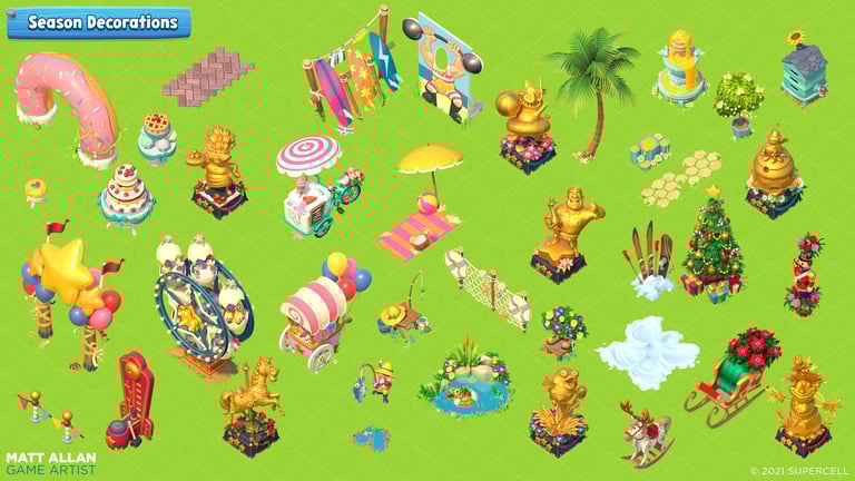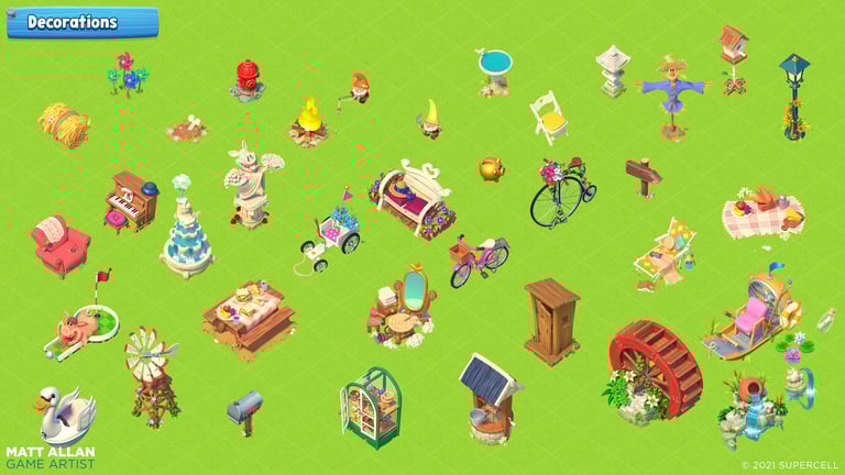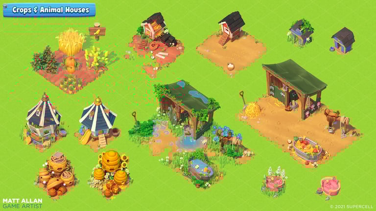 I was responsible for the Art Direction of the farm, aiming to develop a polished and fresh style whilst carrying that, Aardman inspired, Hay Day visual DNA.