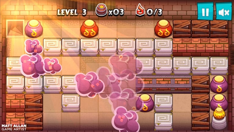 I created all the art assets for this game, from UI and front end, to sprites, backgrounds and effects! If 2D Zelda, Bomberman and Indiana Jones were to have a baby, it would look, and play, something like this!